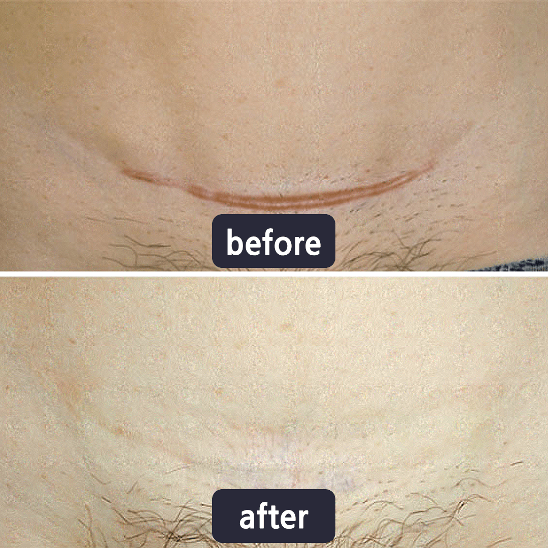 "I am usually skeptical of these types of products, but since they have a return policy I decided to try it out. I have had this keloid scar behind my shoulder since I was a teenager, and after just a month of using the gel it is completely gone!"